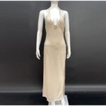 3D Flower Decor Backless Deep V Slit See-Through Beach Dress